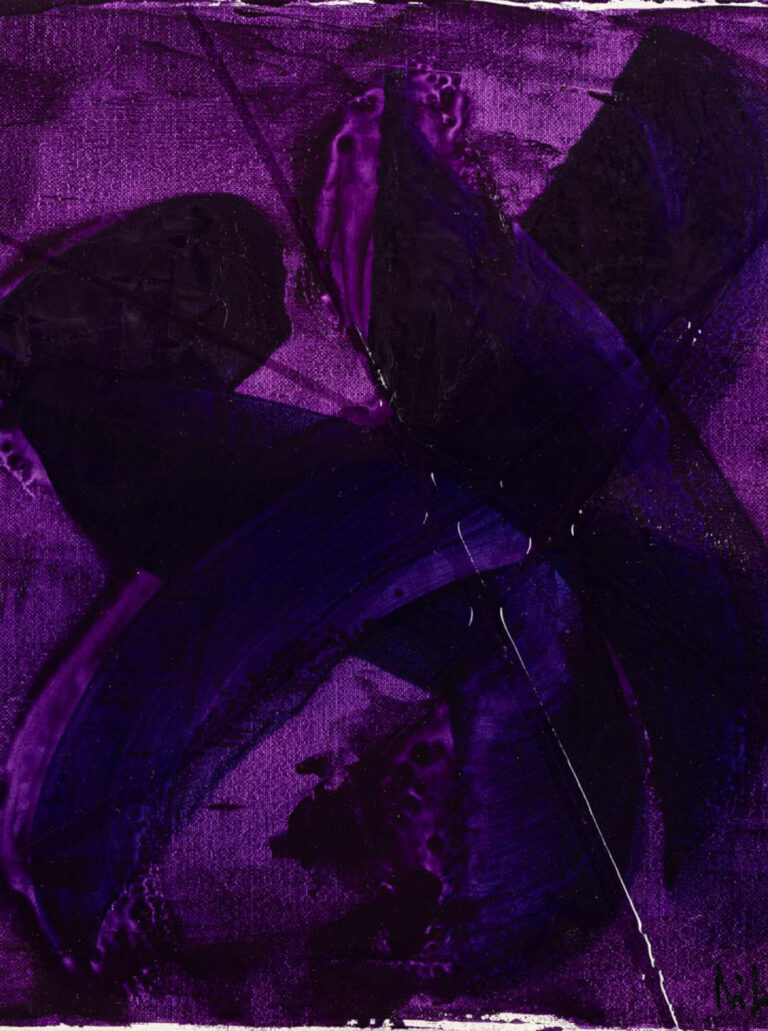 La sezione è costituita da monocromi di varie dimensioni, nei colori verde bosco, viola, terra antica. Per la pittura ho usato il colore acrilico e la resina pigmentata.